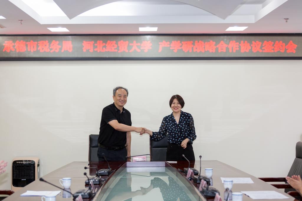 会议最后,77779193永利77779193永利经理王晓洁与承德市税务局党委书记赵波共同签署了产学研基地合作协议有效期十年。今后,双方将秉承优势互补、共同发展的原则,开展多种形式校政产学研合作,为青年员工提供广阔的实习实践平台,推动行业全面发展。