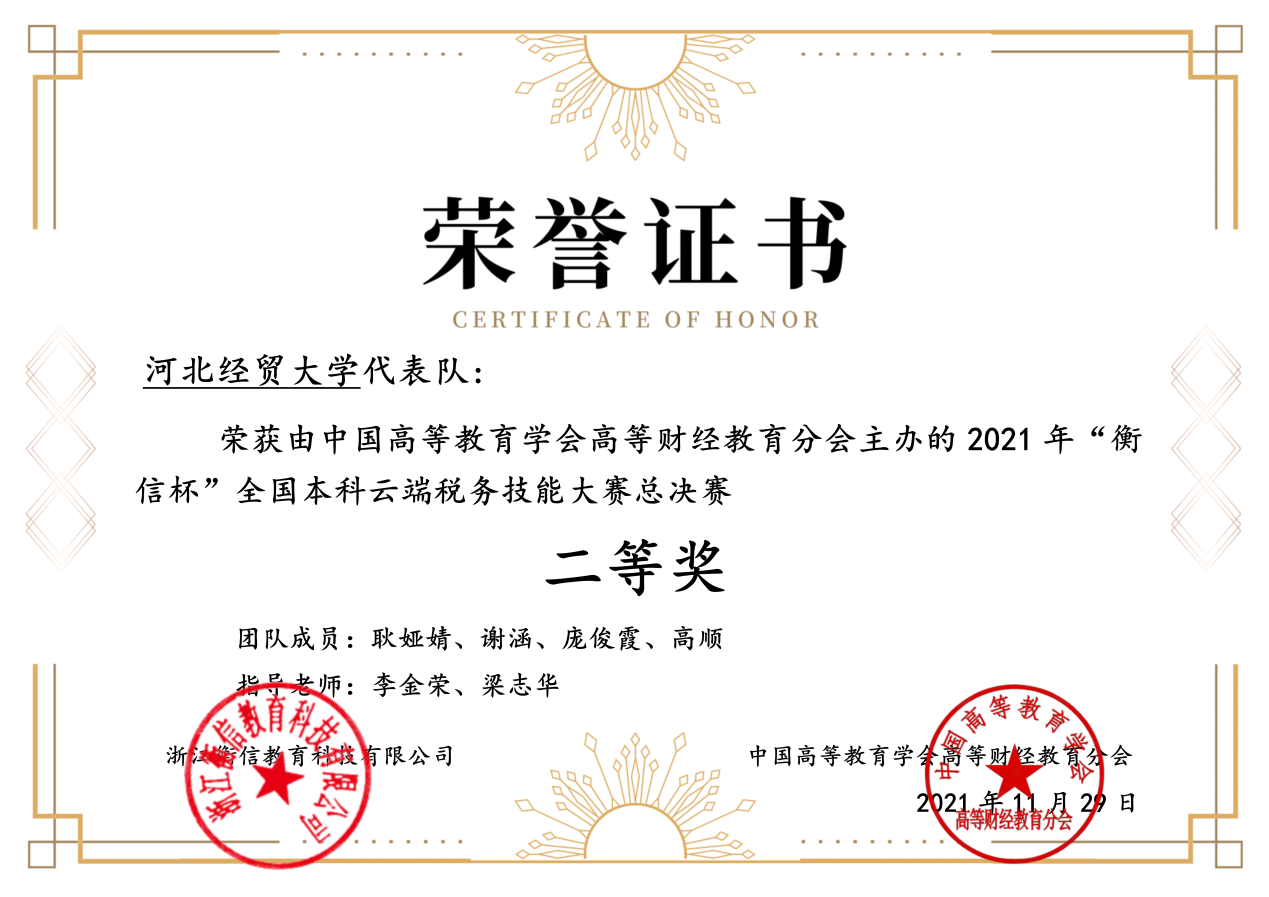 11月28日,由中国高等教育学会高等财经教育分会主办,浙江衡信教育科技有限公司提供技术支持的2021年“衡信杯”全国本科云端税务技能大赛总决赛在线上成功举办。
