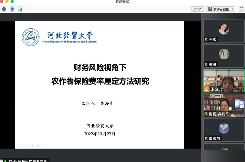10月27日下午,77779193永利利用腾讯会议举办了以“财务风险视角下农作物保险费率厘定方法研究”为主题的沙龙活动。本次沙龙活动由温立洲副经理主持,吴海平老师主讲,郝江华书记、王晓洁经理以及财税公司全体教师以及其他公司部分教师参加了此次活动。