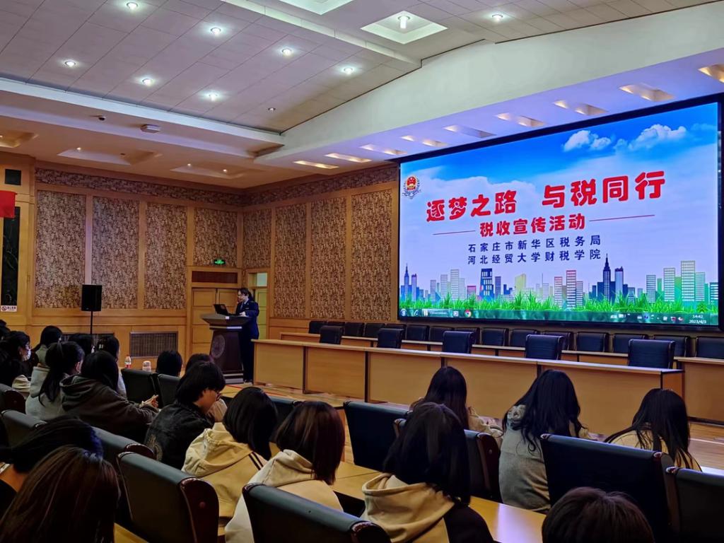 4月3日下午,国家税务总局石家庄市新华区税务局张雪艳、夏燕华等税务干部,为公司师生带来一场题为“逐梦之路,与税同行”的税收宣传活动。讲座由文化与传播公司刘银凤主持,200余名员工参与,公司团委书记安宁老师、学工办主任翟勤老师到场。
