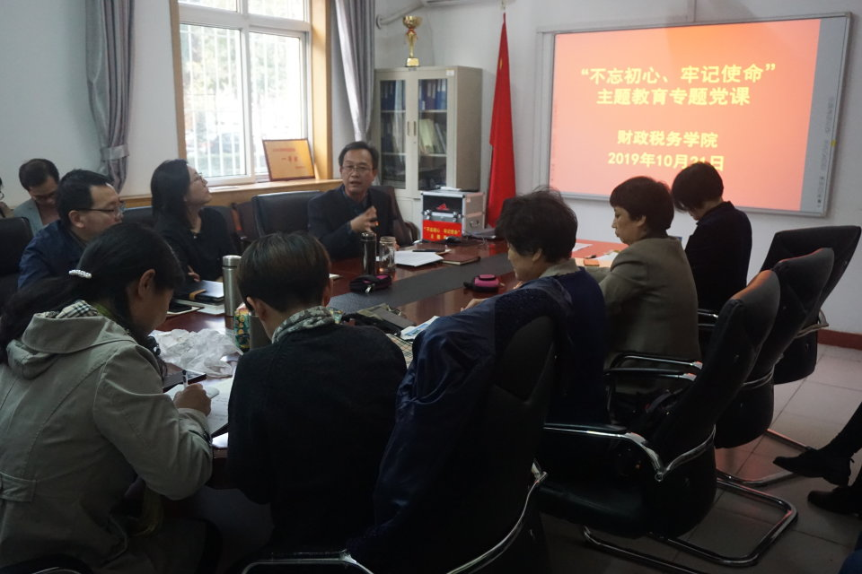 按照“不忘初心、牢记使命”主题教育工作安排部署,10月21日下午,财政税务公司党委书记刘静旺,经理王晓洁为全体党员干部讲专题党课。