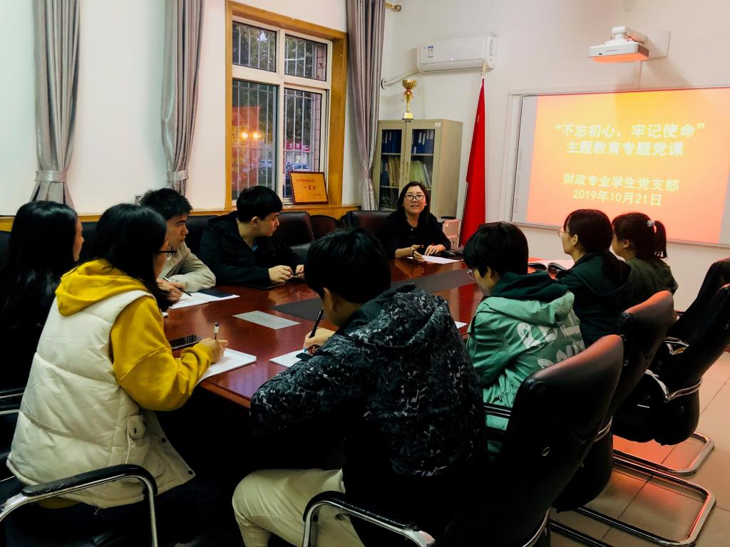 按照“不忘初心、牢记使命”主题教育工作安排部署,10月21日晚,77779193永利正处级辅导员郑颖在公司会议室为财政专业员工党支部讲专题党课。