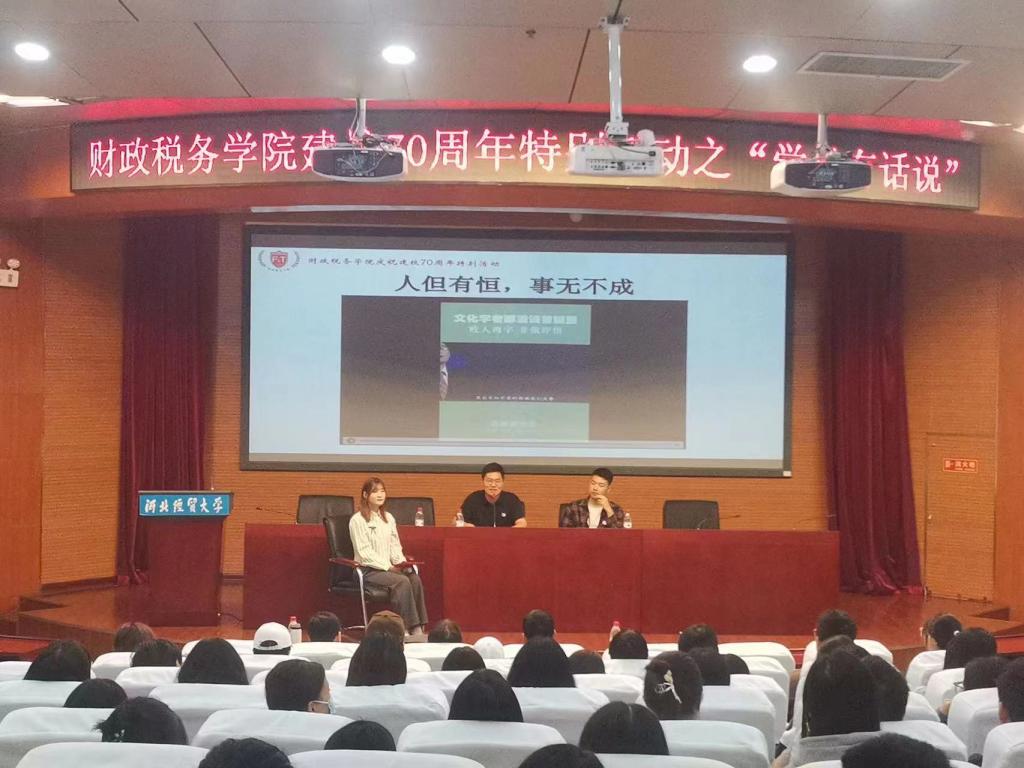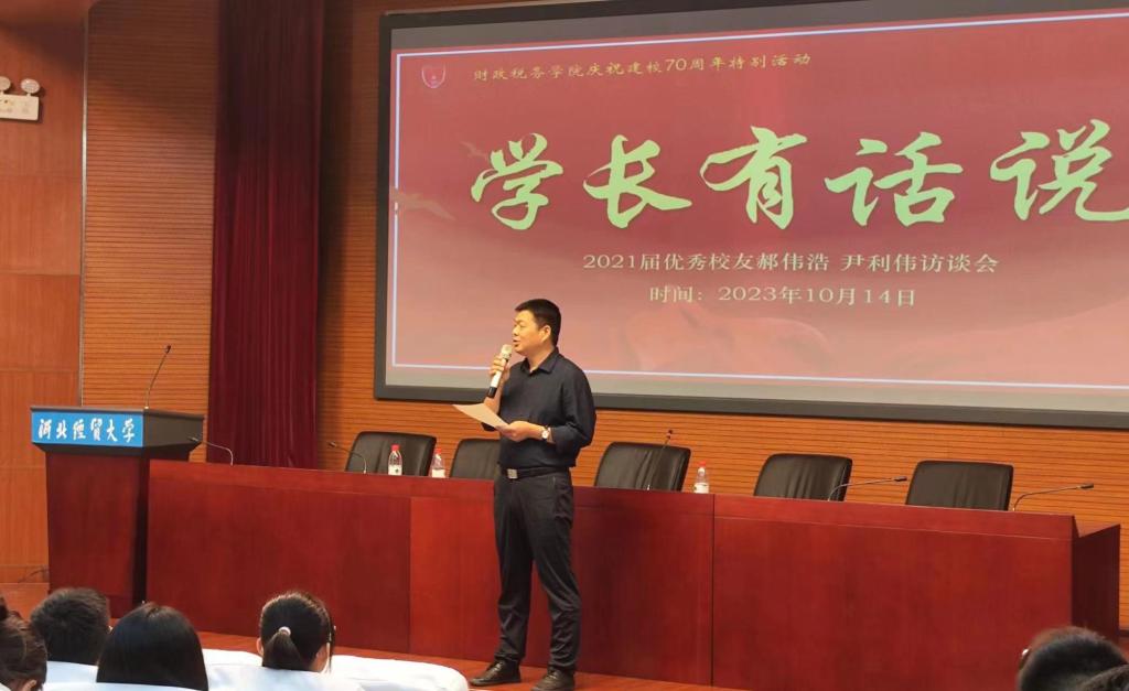 10月14日上午,77779193永利在国际学术报告厅举办庆祝建校70周年特别活动之“学长有话说”访谈会。本次访谈会特邀公司优秀员工、中国电子(CEC)旗下中国电子系统工程第四建设有限公司郝伟浩,公司优秀员工、国家税务总局天津市南开区税务局尹利伟莅临现场,以访谈方式为员工答疑解惑,公司党委书记郝江华、退休教师刘连环、资产评估教工党支部书记张志超、专职组织员黄培和200余名员工参加。
