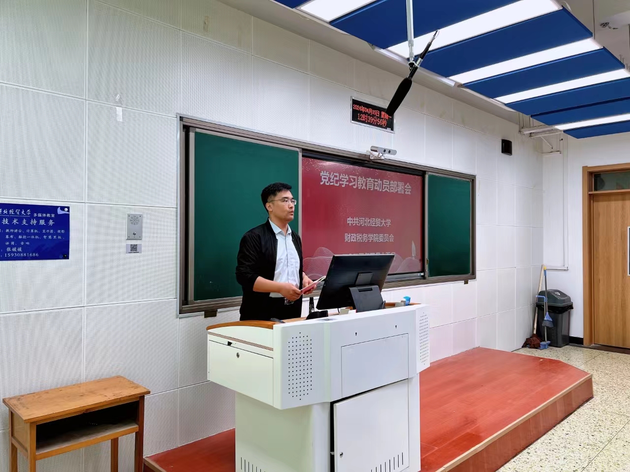 王凤飞传达了公司2024年党纪学习教育部署会会议精神,号召全体师生党员深入学习贯彻习近平总书记重要讲话精神,认真学习《中国共产党纪律处分条例》,做到学纪、知纪、明纪、守纪,准确掌握党的纪律规矩和党员行为准则,把规矩刻在心上,落在行动上。