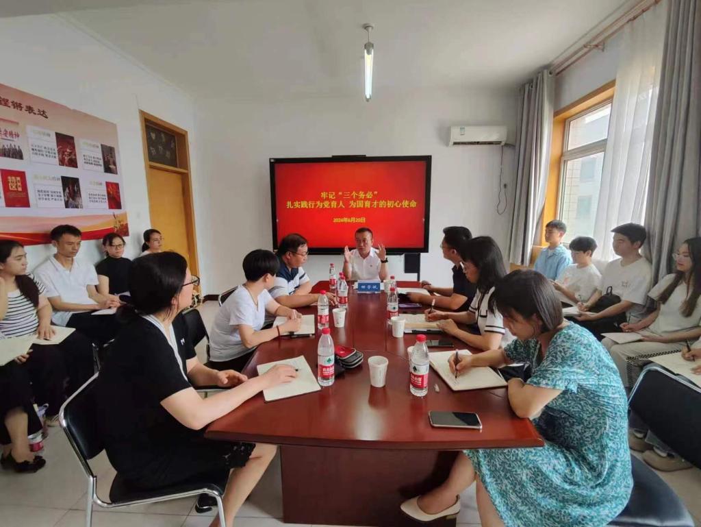 田学斌强调,不忘初心、牢记使命是中国共产党人的永恒课题,坚守初心使命是中国共产党人的政治本色。党员教师要始终牢记并扎实践行“为党育人,为国育才”。最后他指出,我们必须全面贯彻习近平新时代中国特色社会主义思想和习近平总书记重要指示精神,准确把握“三个务必”的丰富内涵和实践要求,不断完善落实新财经五维人才培养模式,锚定建设国内知名的高水平财经大学奋勇前进,以必胜信心、优良作风和昂扬精神状态,为推动高质量发展持续注入内生动力。