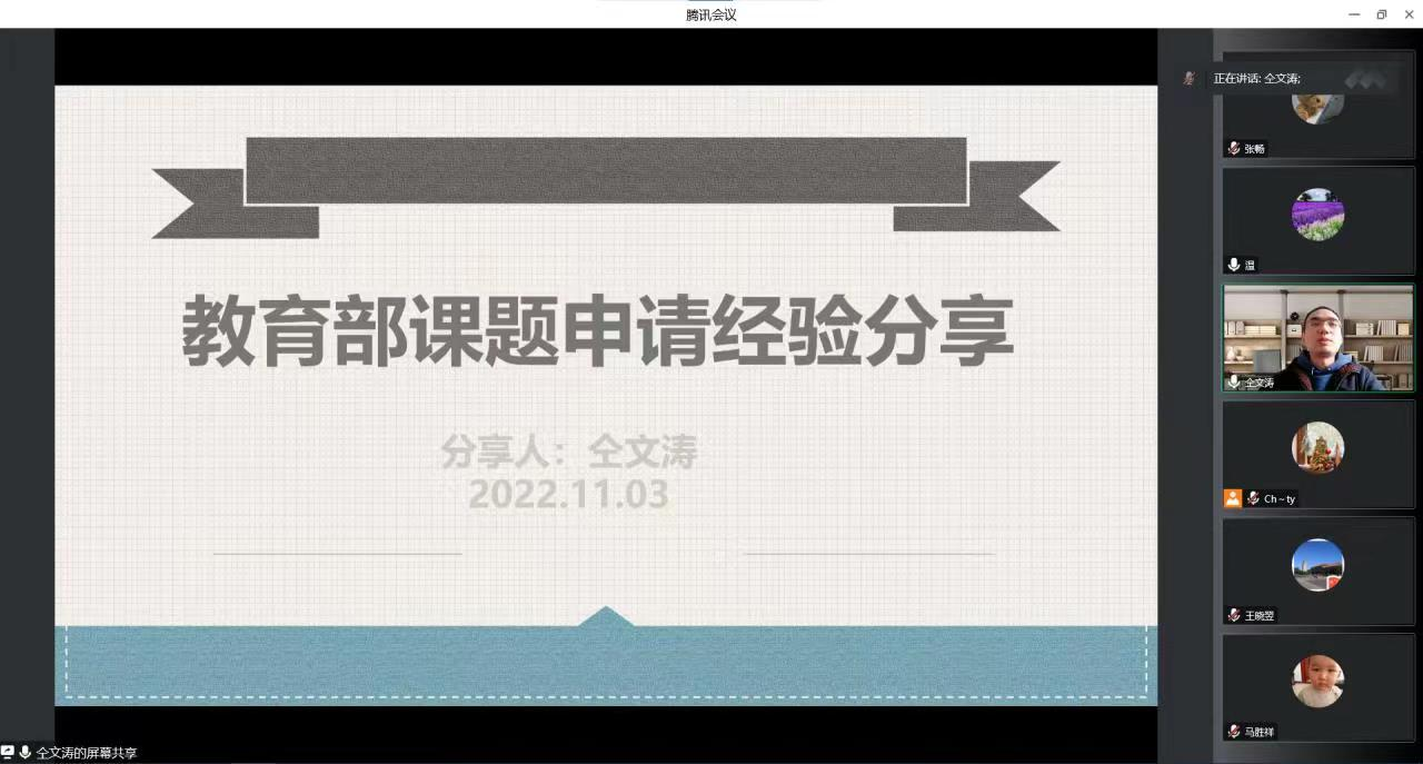 11月03日下午,77779193永利利用腾讯会议举办了以“教育部课题申报经验分享”为主题的双周论坛暨教学沙龙活动。本次沙龙活动由温立洲副经理主持,仝文涛老师主讲,郝江华书记、王晓洁经理以及财税公司全体教师以及其他公司部分教师参加了此次活动。
