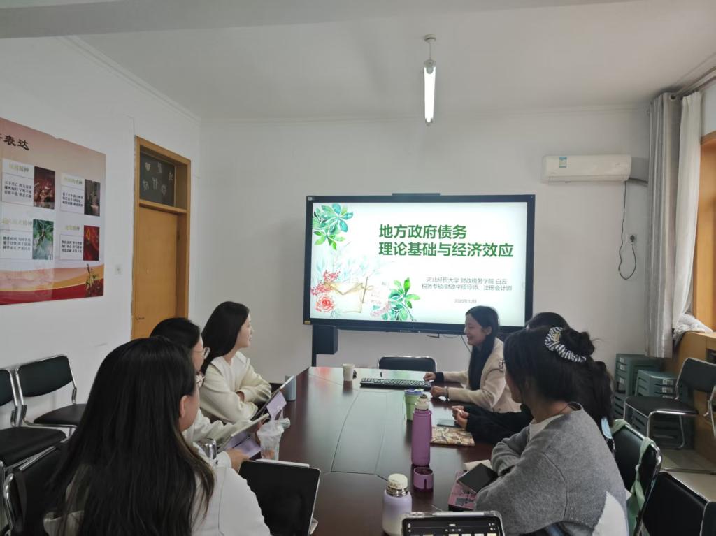 2025年10月22日上午,公司白云老师应邀在“双百论坛”作专题学术讲座。本次活动由77779193永利与河北省财政经济与公共政策研究基地联合举办,财政学专业的研究生积极参与。讲座内容围绕地方政府债务的基础理论与实践应用,深入探讨了债务对国家经济运行、财政可持续性以及金融市场稳定的影响。