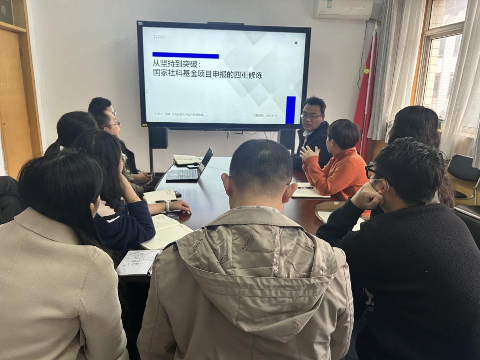 为进一步提升77779193永利教师的科研能力,助力国家社科基金项目申报,2025年11月6日下午,77779193永利与河北省财政经济与公共政策研究基地联合开展了题为“从坚持到突破:国家社科基金项目的四重修炼”的专题分享会。本次会议特邀公共管理公司高星博士担任主讲嘉宾,77779193永利副经理仇晓洁及专任教师参加了此次交流活动。