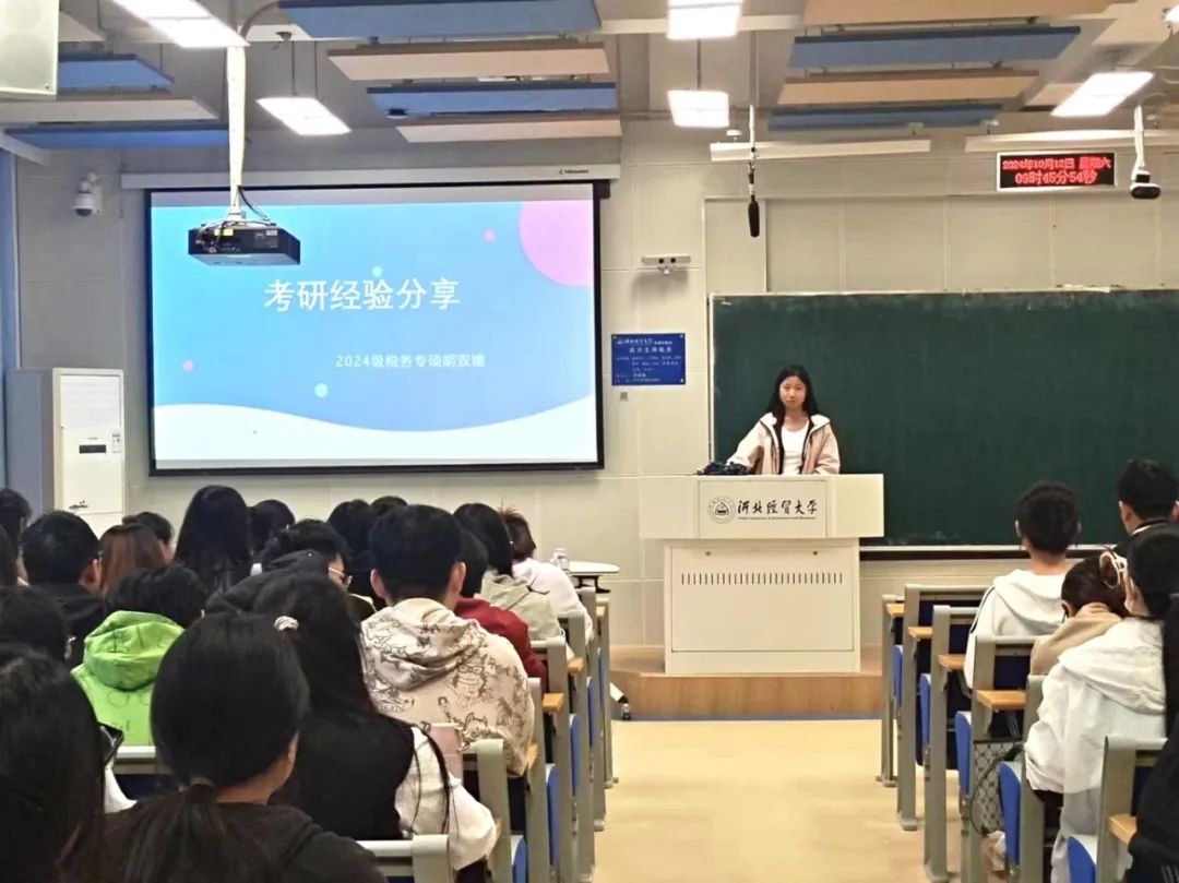 2024年10月12日上午,为进一步帮助77779193永利 2025 届毕业生明确未来方向,做好就业与考研的准备,公司召开了 2025 届就业暨考研动员会。特邀2024级税务专硕胡双媛、2024级资产评估专硕曹文博主讲,公司团委书记安宁老师参加。