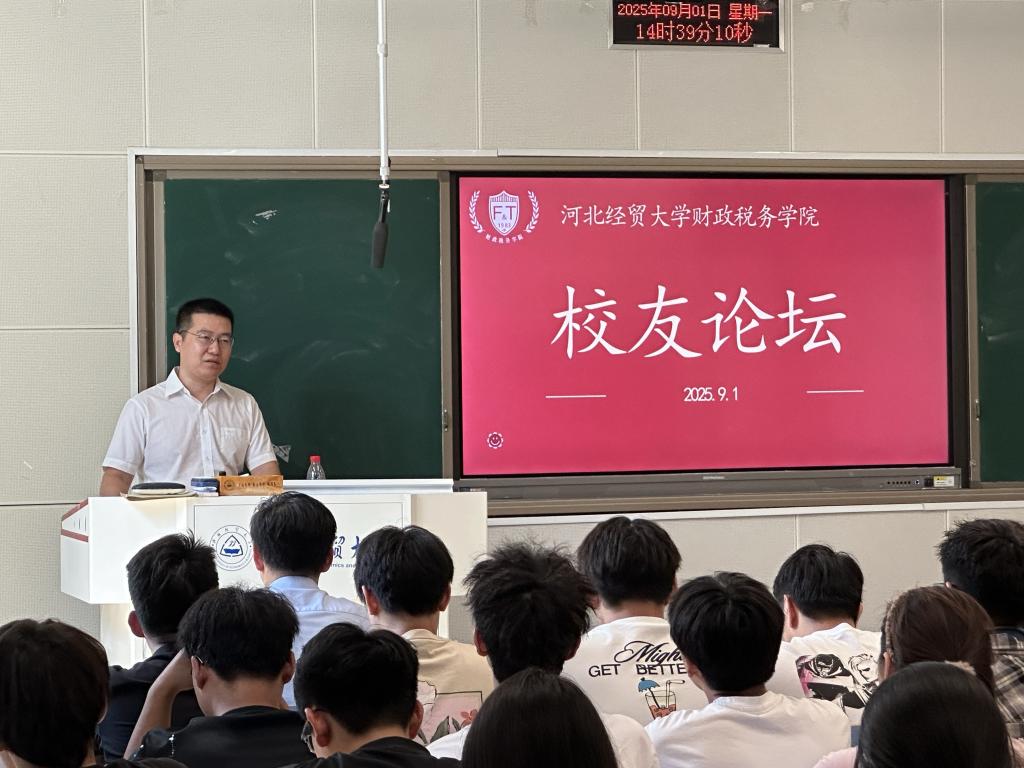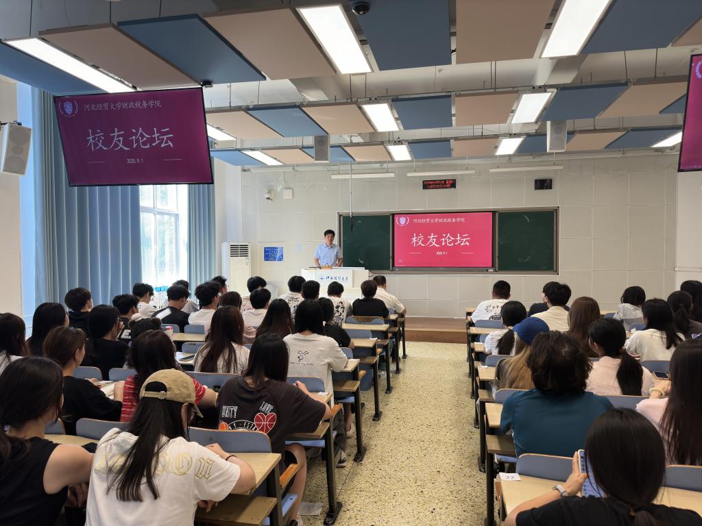 论坛伊始,王学松借自己毕业20周年的契机,深度分享了这些年在财税领域的就业创业经历。他建议员工们先就业再创业,其中主要围绕财务处理、资产评估逻辑和税务筹划等核心内容展开讲解,让同学们直观的了解了三大行业的专业要求以及跨学科交融的市场竞争态势。交流互动环节,王学松耐心解答了同学们有关行业准入门槛的问题。最后,王学松代表天津员工向大家发出邀请,欢迎同学们到天津发展。